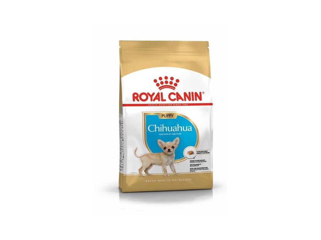 Royal Canin Chihuahua PuppySpeciálně navržené krmivo pro nejmenší psí plemeno, a to čivavu, tak, aby pokrylo její velký výdej energie. Krmivo obsahuje vysoký podíl bílkovin a energie, aby čivavě doplnilo tu spoustu energie, kterou spálí. Receptura pokrývá veškeré nutriční potřeby štěněte čivavy do 8. měsíce věku. Pro podporu zdravého růstu a imunitního systému obsahuje patentovaný komplex antioxidantů - včetně vitamínu E. Exkluzivní krmivo Royal Canin Chihuahua Puppy je přizpůsobené velmi malé čelisti čivavy, a proto se jí dobře uchopuje a žvýká. Tvar, velikost, struktura a vybrané chutě granulí přispívají k celkové vysoké chutnosti krmiva, která uspokojí i ty nejmlsnější čivavy!