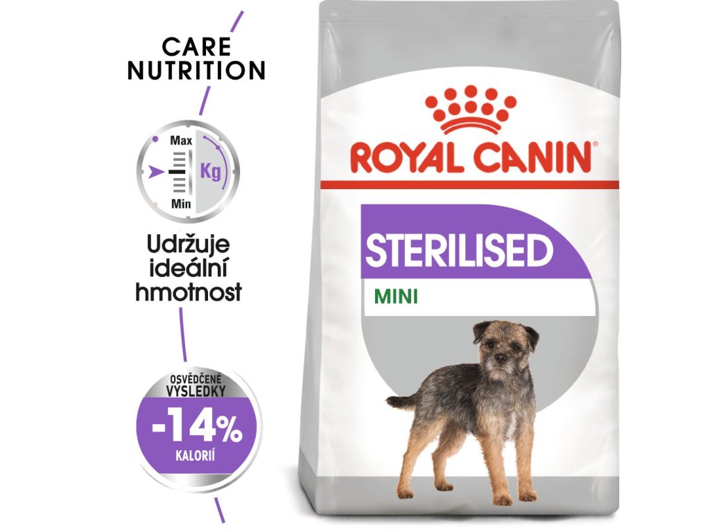 Royal Canine CCN Mini Sterilised 1kgKrmivo ROYAL CANIN® Sterilised Mini je vhodné pro kastrované dospělé psy s váhou do 10 kg. Obsahuje vysoce kvalitní živiny vyvážené tak, aby mu pomáhaly zůstat aktivní a v dobré kondici a zároveň ho zasytily. Granule pro psy ROYAL CANIN® Sterilised Mini obsahují optimální kombinaci vlákniny pro pravidelný a zdravý průchod střevy. Navíc vašeho psa zasytí a omezí žebrání.