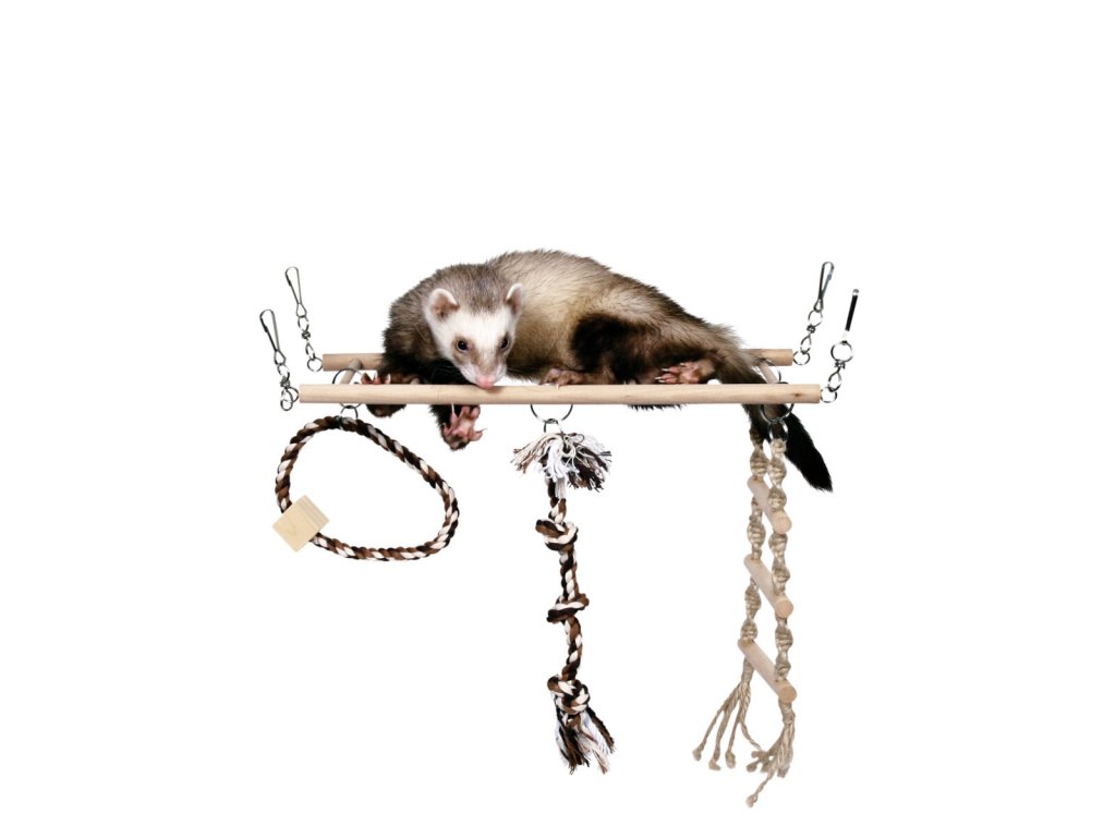 Houpačka do klece s hračkami-činka, kruh, žebřík pro hlodavce