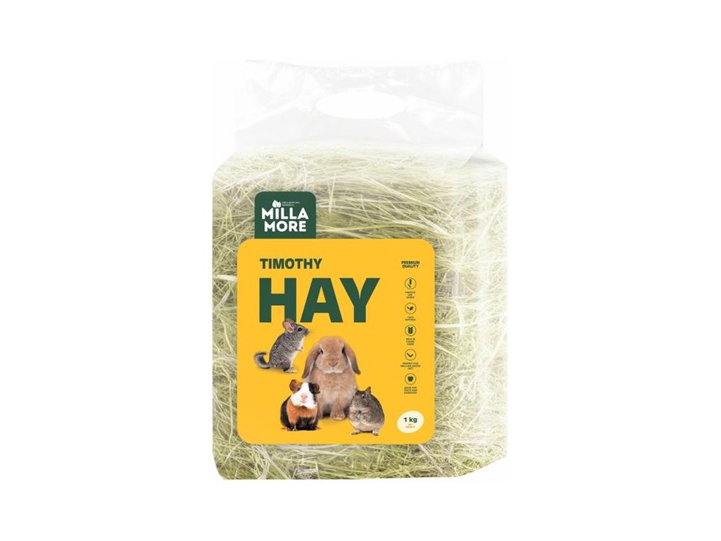 Seno je nezbytnou součástí každodenní stravy králíků, morčat, osmáků, činčil a dalších drobných savců. Proto by jim mělo být podáváno v odpovídající kvalitě. Prémiové seno Millamore Timothy Hay z bojínku lučního (Phleum pratense) pochází z nejlepších travnatých polí v Evropě. Je výživné, chutné a představuje bohatý přírodní zdroj hrubé vlákniny (32 %), která podporuje trávení. Díky vysokému obsahu křemičitanů napomáhá také obrušování zubů (včetně stoliček), aby nedocházelo k jejich přerůstání.