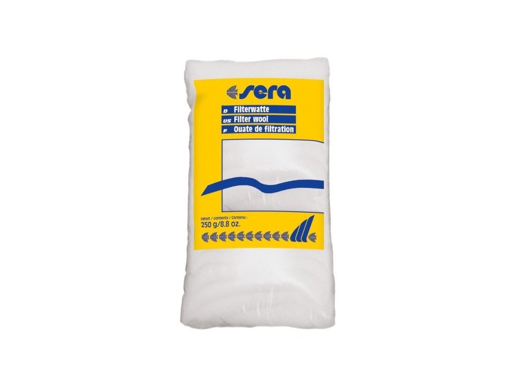Sera filtrační vata bílá Filterwatte 250 gPokud doma ve vašem akváriu máte mechanickou předfiltraci, určitě se vám bude hodit i Sera Filterwatte. Jedná se o filtrační vatu, kterou tvoří stabilní vlákna, která zachytí jemnější nečistoty, a to po dlouho dobu a bez toho, aby se slepila dohromady. Mezi další užitečné vlastnosti patří pratelnost a užití pro sladkou i mořskou vodu.