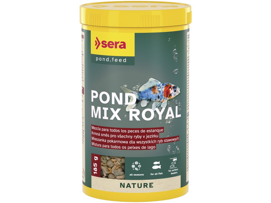 Sera kompletní krmivo pro ryby v jezírku Pond Mix RoyalKrmivo určené pro celoroční krmení ryb v jezírkách s různě starými rybami. Sera Pond Mix Royal Nature je základní krmivo z šetrně vyráběných vloček, granulí a celých gamarů (blešivců) pro celoroční krmení v jezírkách se smíšenou osádkou. Krmivo je bez barviv a konzervačních látek, barvy různých typů krmiv jsou výsledkem přírodních ingrediencí. Vyvážená směs obsahuje vše, co v jezírku ryby různých druhů potřebují pro zdravý vývoj a silnou odolnost proti nemocem. Potrava s přísadami blízkými přírodě je nejlepší ochranou před nedostatky a podporuje zdraví a vitalitu ryb v každém ročním období. Typy krmiv Nature proto obsahují přírodní ingredience jako spirulina, krill nebo udržitelnou hmyzí moučku z larev mouchy bráněnky (Hermetia).