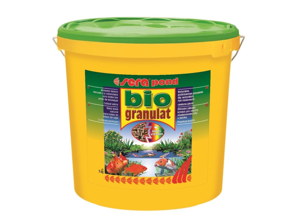 Sera Pond GranulatGranulované krmivo pro jezírkové ryby, především pro ty větší. Pro intenzivní vybarvení doporučujeme doplňkově krmit se sera KOI Professional Spirulina – vybarvovací krmivo a se sera goldy color spirulina pro zlaté rybky a jiné menší druhy.
