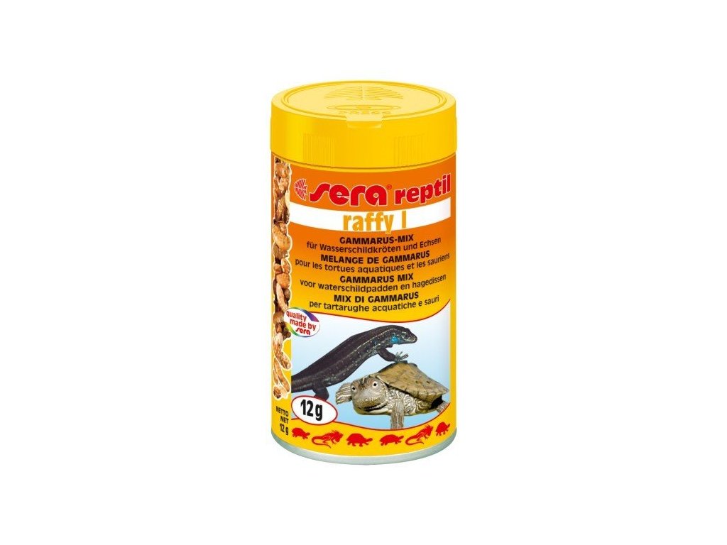 Sera přírodní potrava pro masožravé plazy a obojživelníky Raffy I 100 ml NATURESera Raffy I je čistě přírodní pochoutka. Pečlivě namíchaná směs malých přírodních krmných živočichů (blešivců, ančoviček a krevetek) nabízí ideální přírodní potravu pro masožravé plazy a obojživelníky (např. vodní želvy, axolotly). Krmivo je bohaté na přírodní minerální látky a balastní látky. Obsahuje více než 4 % vápníku a také bílkoviny, omega mastné kyseliny, karotenoidy, minerální látky a stopové prvky. Toto složení přirozeně reguluje trávení a zároveň podporuje vývoj a odolnost proti nemocem. Základ pro zdravý vývoj kostí a krunýřů. Je skvělým přídavkem ke krmivům Sera Raffy P, Sera raffy Mineral a Sera reptil Professional Carnivor.