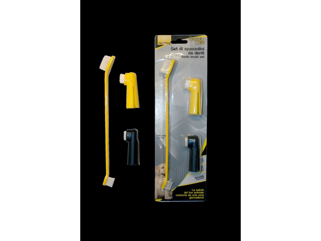 Set kartáčků na zuby GimdogSet kartáčků na zuby Gimdog určené k zajištění hygieny psích zoubků a udržení zdravé ústní dutiny. Pomáhají odstraňovat zubní plak a brání vzniku zubního kamene u psů. Oboustranný kartáček má extra jemné štětinky, které nedráždí dásně vašeho psa a jsou šetrné k zubům.