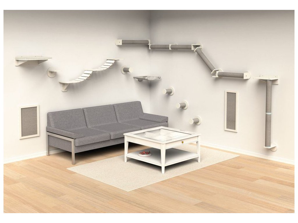 - rozšiřuje životní prostor kočky v bytě o vyvýšené plochy