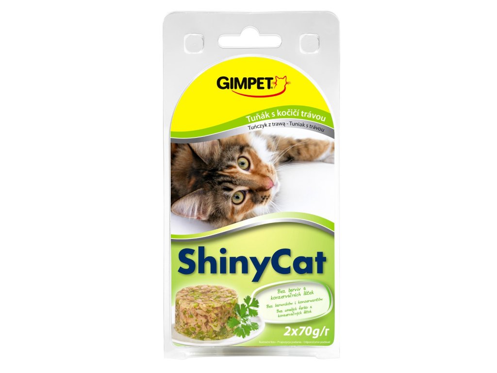 ShinyCat konzerva tuňák s kočičí trávou 2 x 70 gKonzerva s příchutí tuňáka obsahuje chutné kousky zeleniny a masa. Díky tomu je tato strava nejen vysoce stravitelná, ale také velmi chutná. Konzerva je obohacena o kočičí trávu, která působí blahodárně na jejich zažívání. Obsahuje vysoké množství proteinů, to podporuje zdraví a imunitní systém vaší kočky. Konzerva je vyrobena z čerstvých a kvalitních surovin.