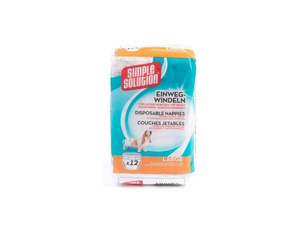 Jednorázové pleny od Simple Solution jsou vyrobeny z buničiny a obsahují super absorpční polymer, který přispívá k rychlému vstřebání tekutin a udržuje pokožku v suchu. Každá plena má díru na ocas a regulovatelný obvod pasu pro jednoduché a pohodlné nošení. Štíhlý design vyhovuje pohybu psa, zatímco dvojitá bariéra zabraňuje únikům a poskytuje pohodlí.