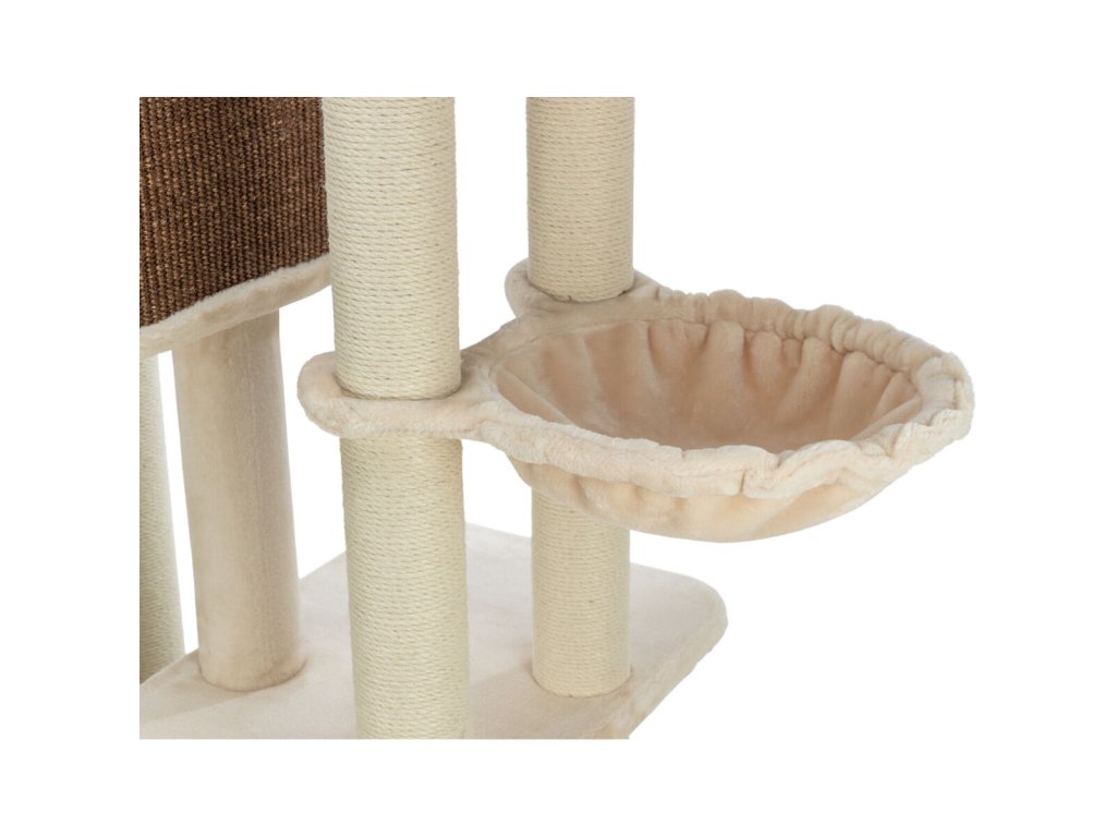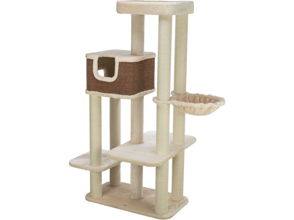 Silné a pevné sloupky jsou motané vysoce odolným sisalem, který podporuje přirozenou potřebu koček škrábat a udržovat drápky v kondici. Jeskyně je uvnitř polstrovaná kombinací plyše a fleecu (polyester), což poskytuje příjemné a teplé útočiště. Celé škrabadlo je potaženo extra kvalitním plyšovým materiálem, který je odolný a snadno se udržuje. Vyrobeno z materiálů, které kombinují pevnost a komfort — juta o průměru 5 mm a měkký polyesterový plyš. Díky rozměrům 165 cm na výšku a základně 78 × 45 cm škrabadlo pevně stojí a skvěle zapadne do vašeho domova.