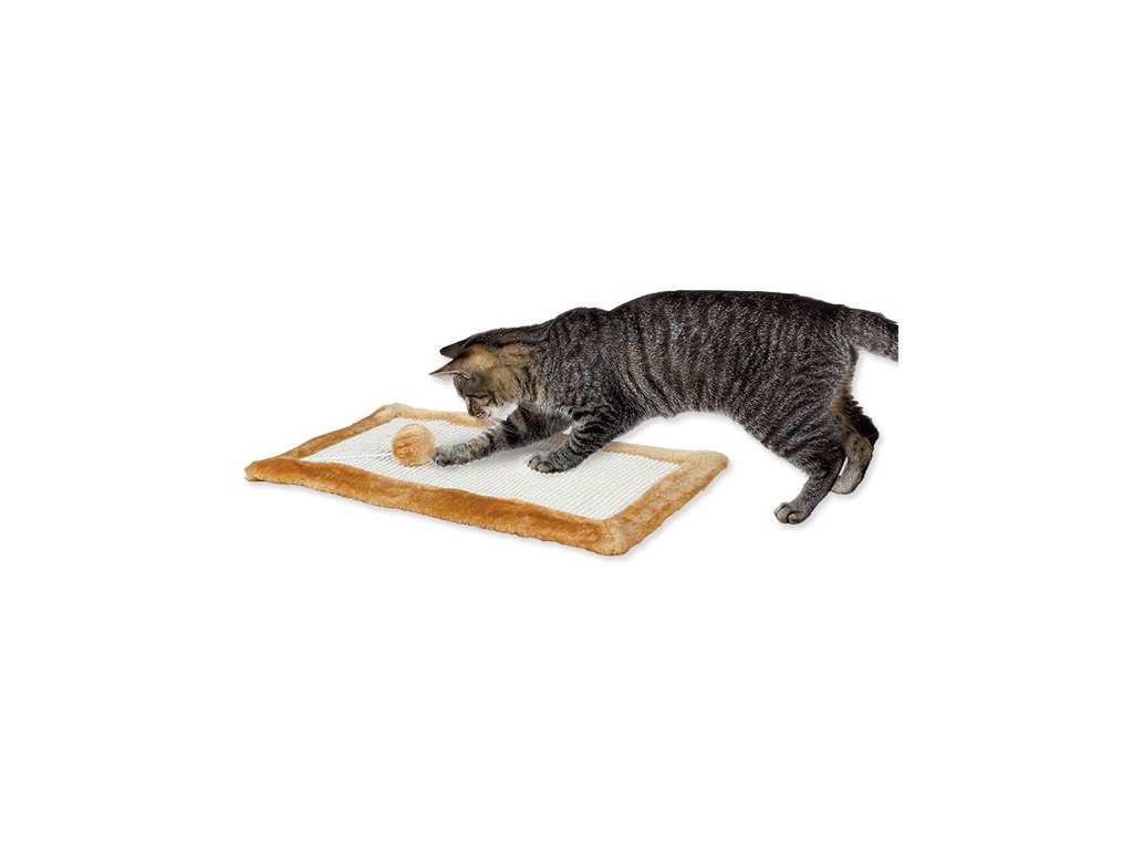 Škrabadlo pro kočky , které je vyrobené ze sisalu a plyše. Slouží k obrušování drápků. Lze ho snadno zavěsit na zeď a nebo ho použít vleže. Součástí je plyšový míček na provázku, který bude vaši kočku neustále lákat ke hře. Okraje škrabadla jsou lemovaná plyšem.