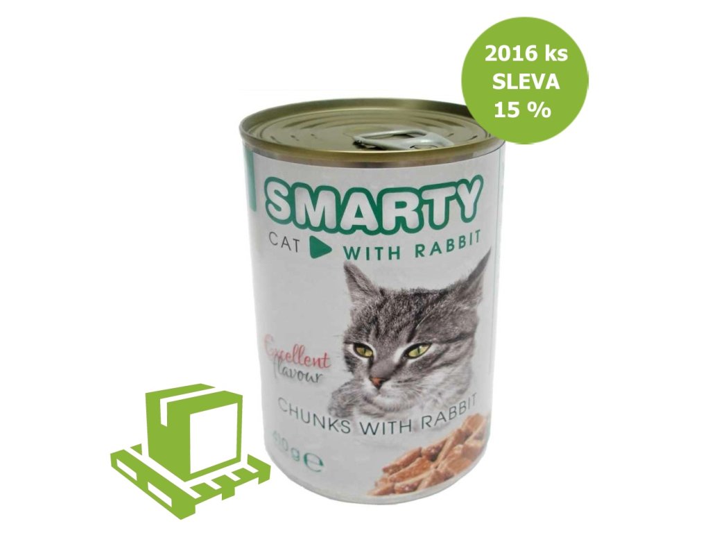 SMARTY Cat Králík chunks, konzerva 410 g (paleta 2016 ks) SLEVA 15 %