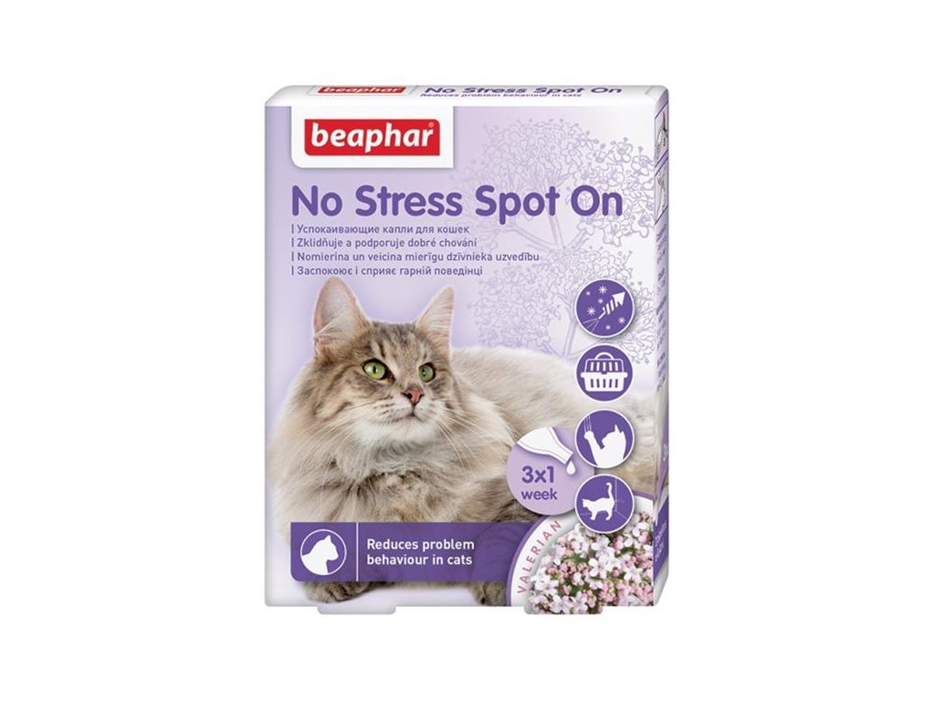 Beaphar No Stress Spot On je vhodný pro všechna plemena a věkové kategorie koček. Snižuje stres u koček a udržuje je v klidu díky zklidňujícímu účinku extraktu kozlíku lékařského, který je obsažen v mikrokapslích. Ty fungují na principu pomalého uvolňování a dlouhodobého účinku.