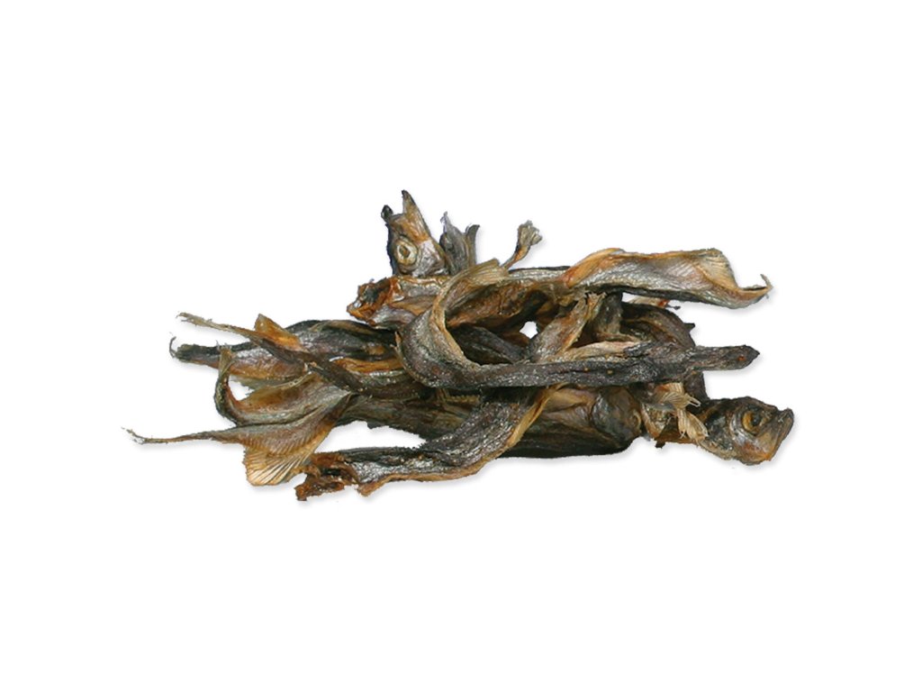 Doplňkové krmivo pro psy. Podávejte jako odměnu nebo pamlsek. Sušené rybičky obsahují minerální látky, bílkoviny a stopové prvky.