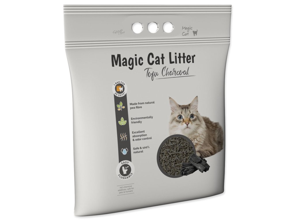 Je zcela bez chemických přísad, netoxické a s úžasnou schopností absorpce vlhkosti. Hrudky můžete snadno spláchnout do toalety. S Magic Litter Tofu zajistíte své kočce čisté a zdravé prostředí, ve kterém se bude cítit skvěle. Jedno balení vydrží při používání jednou kočkou až 30 dnů.
