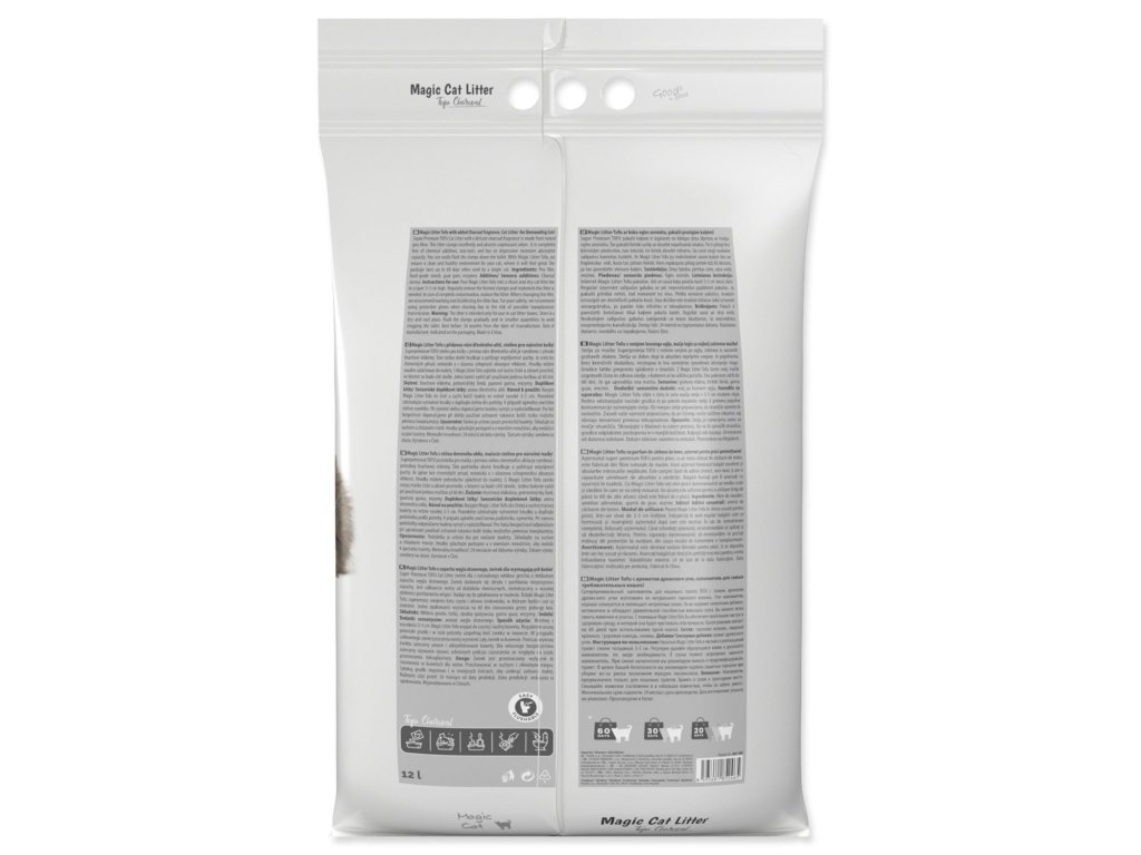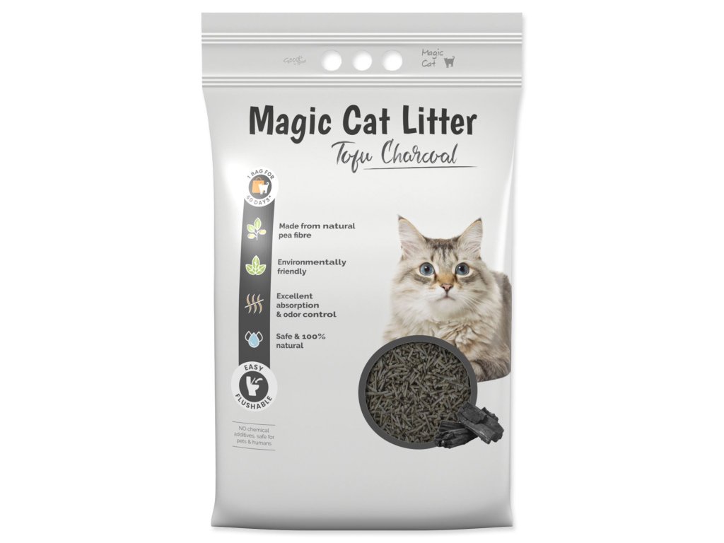 Je zcela bez chemických přísad, netoxické a s úžasnou schopností absorpce vlhkosti. Hrudky můžete snadno spláchnout do toalety. S Magic Litter Tofu zajistíte své kočce čisté a zdravé prostředí, ve kterém se bude cítit skvěle. Jedno balení vydrží při používání jednou kočkou až 30 dnů.