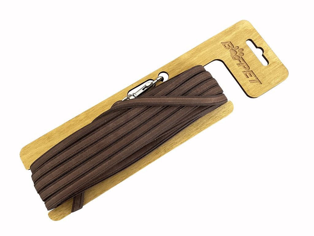 Vodítko je vyrobeno z kvalitní pevné mastné kůže, která zajišťuje dlouhou životnost a vysokou odolnost i při intenzivním používání. Spoj u hákové karabinky je napevno zapleten, což zvyšuje bezpečnost a spolehlivost vodítka. Díky své délce a konstrukci je ideální volbou pro výcvik, procházky v přírodě nebo práci se psem na dálku.Vodítko je vhodné pro střední a velká plemena psů.