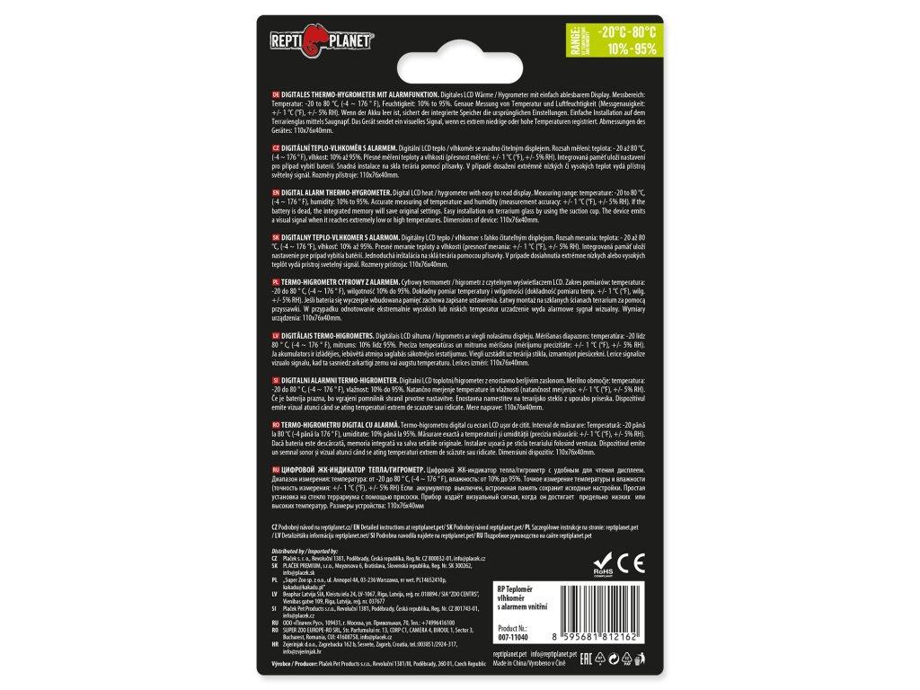 Teploměr Repti Planet vlhkoměr s alarmem vnitřní