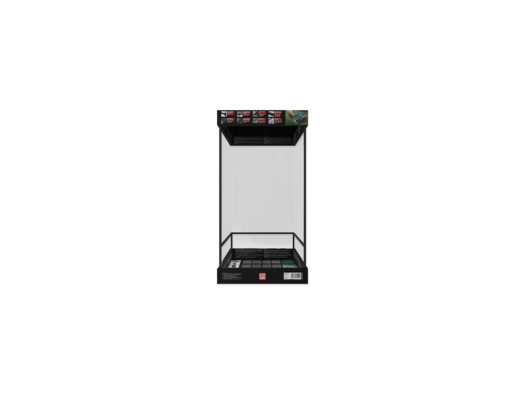 Terária jsou vybavena horním a spodním plastovým rámečkem, který umožňuje stohování terárií a umístění topných desek přímo na vnější stranu spodní skla.