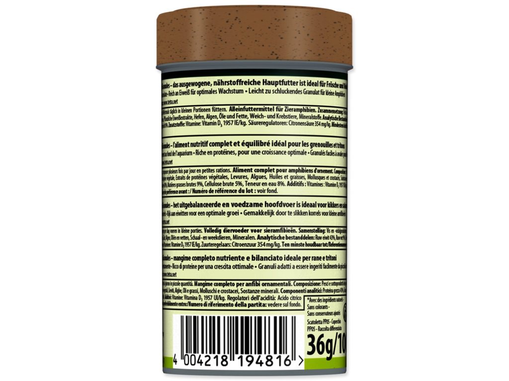 Nutričně vyvážené, kompletní krmivo pro akvarijní žáby a čolky.