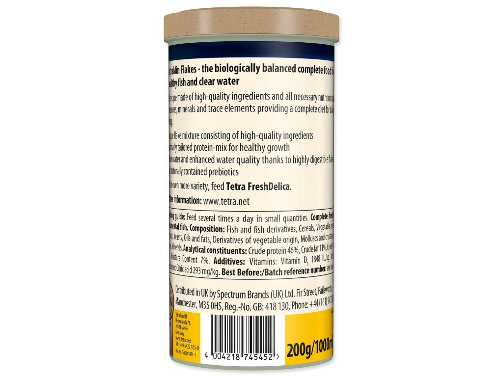Složení: ryby a vedlejší výrobky z ryb, obiloviny, sušené krmné kvasnice, vedlejší výrobky rostlinného původu, měkkýši a korýši, oleje a tuky, řasy, cukr, lecitin.