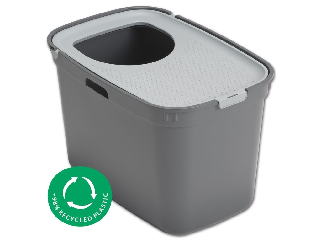 Kryté WC Top Cat vhodné pro koťata i velké kočky díky dostatečně velkému otvoru. Horní víko s průlezem zajistí 100% soukromí a zabraňuje vynášení podestýlky na podlahu.