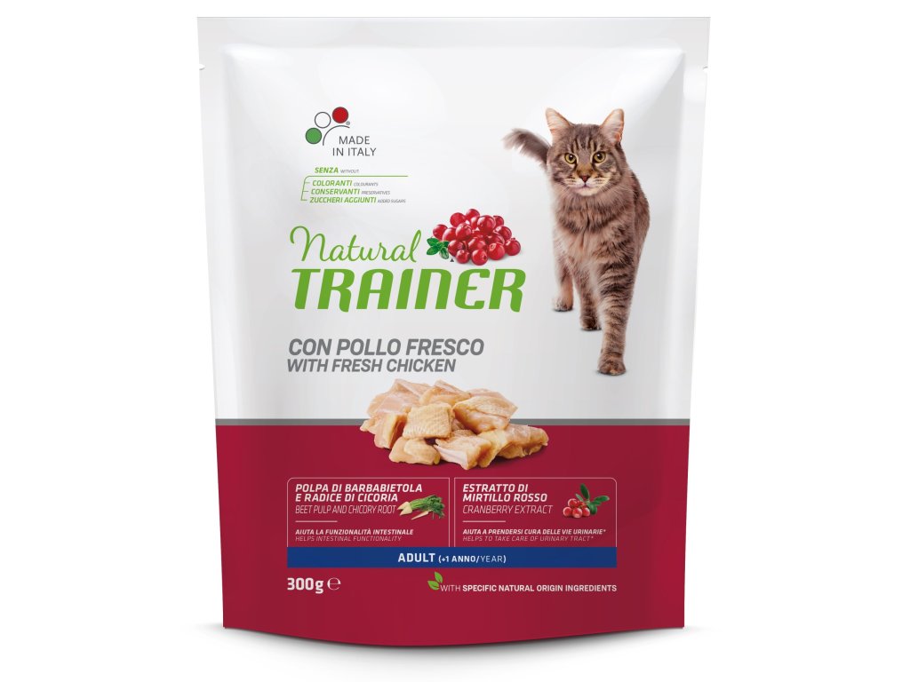 Trainer Natural Cat Adult kuřecí 300 gKrmivo pro dospělé kočky, které mají rády chuť drůbežího masa. Snadno stravitelné granule s obsahem kvalitního kuřecího masa ideální pro každou kočku. Krmivo má nejen výbornou chuť, ale zároveň dodá vašemu mazlíčkovi všechny potřebné živiny, vitaminy a minerální látky.