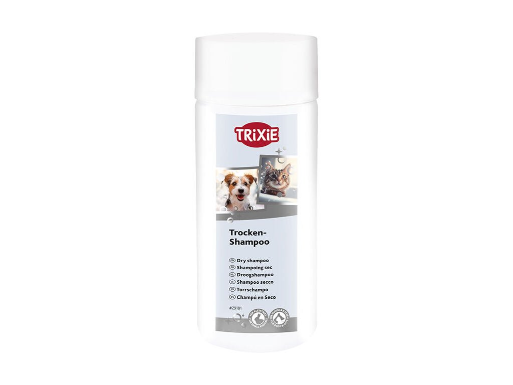 Návod k použití: Suchou srst zvířete zasypte rovnoměrně pudrem, vmasírujte a poté buď vyčešte kartáčem nebo vytřete suchým ručníkem.