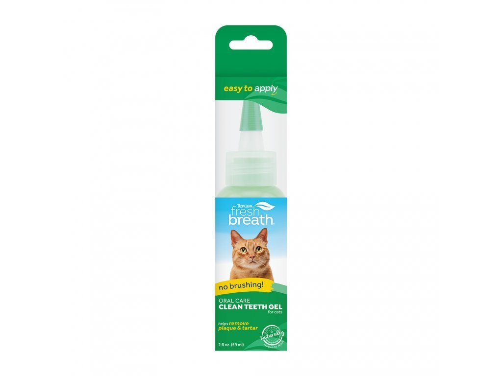 Tropiclean čisticí gel na zuby pro kočky 59 mlSvěží dech, čisté zuby bez zubního plaku a kamene bude mít vaše kočka díky čistícímu gelu Tropiclean Fresh Breath. Žádné složité čištění, jednoduchá aplikace. Stačí nanést jen dvě kapky gelu na zuby z každé strany tlamy. Olizováním si ho kočka roznese na všechny zuby a tím si je vyčistí. Pro maximální užitek by po dobu 30 minut před ani po aplikaci neměla jíst ani pít. Aplikace je vhodná jednou denně v odpoledních hodinách. Čistění kartáčkem není potřebné, ale může urychlit odstraňování plaku.