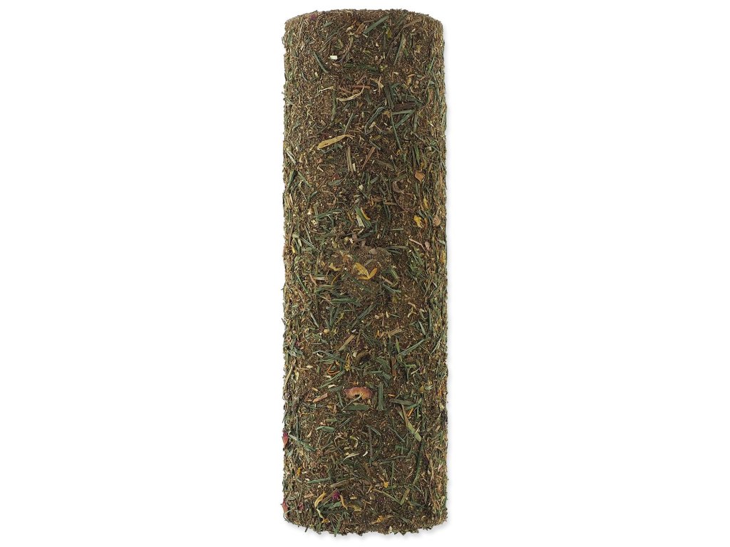Složení: vláknina, škrob, seno z horských luk 12 %, sušené květy měsíčku lékařského 1,8 %, sušené okvětní lístky růže 0,75 %.