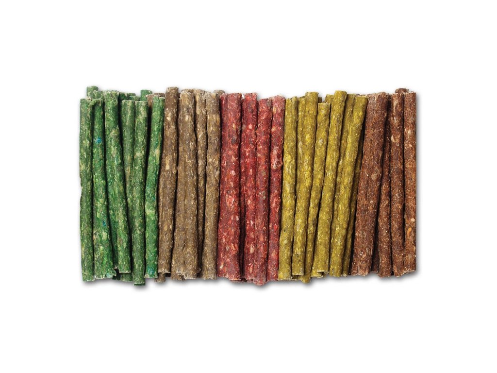 Barevná žvýkací tyčinky, doplňkové krmivo pro psy vhodné jako odměna nebo při výcviku psa.• žvýkací pamlsek pro psy barevný