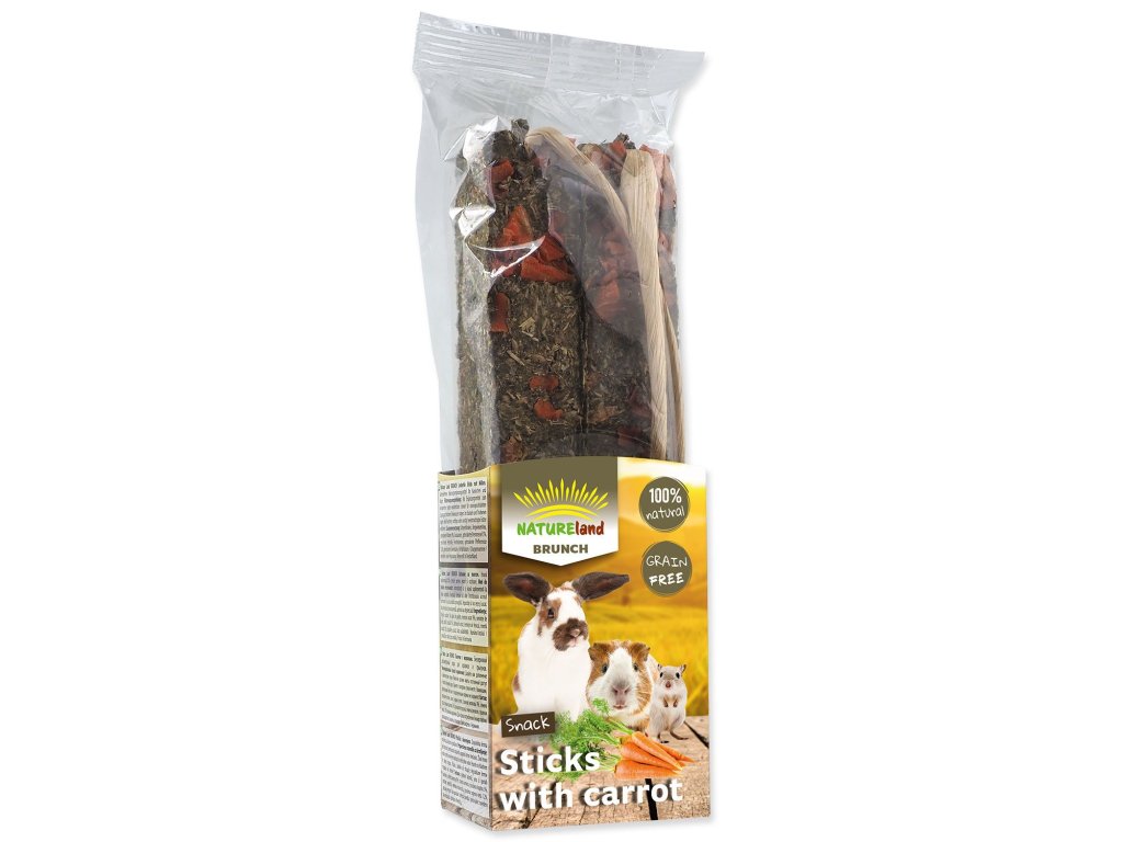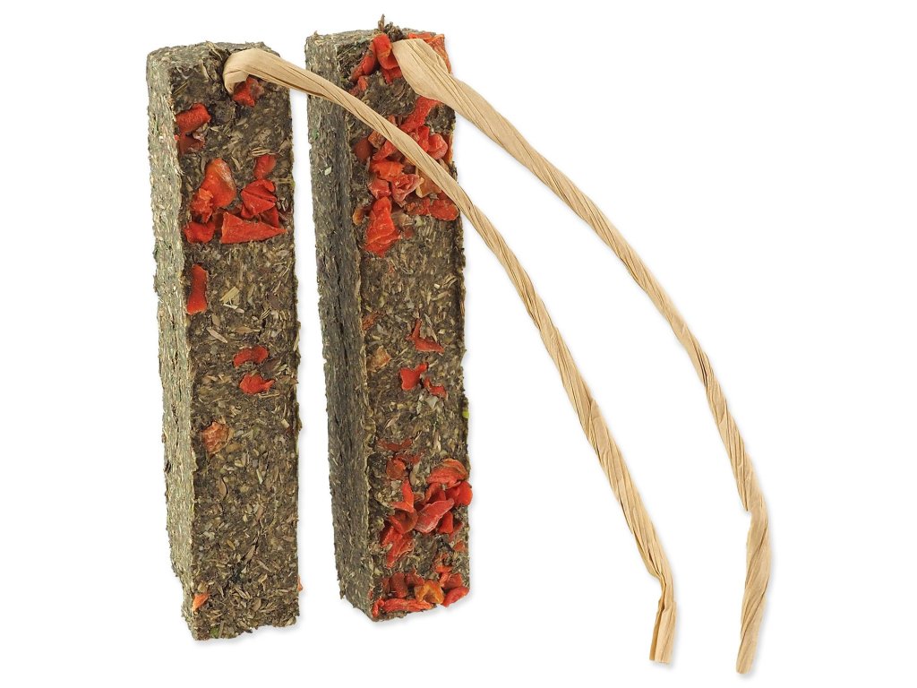 Bezobilné doplňkové krmivo pro králíky a hlodavce. Díky absenci obilnin jsou tyčinky velice vhodné pro králíky, morčata i činčily. Tyto přírodní pamlsky jsou vyrobeny bez přidání umělých barviv. Díky svému složení obsahujícímu sušené bylinky jsou plné vitamínů, minerálů a antioxidantů. Přidaná sušená mrkev podporuje chutnost produktu.