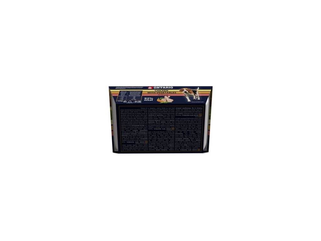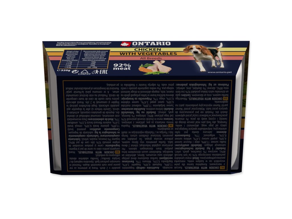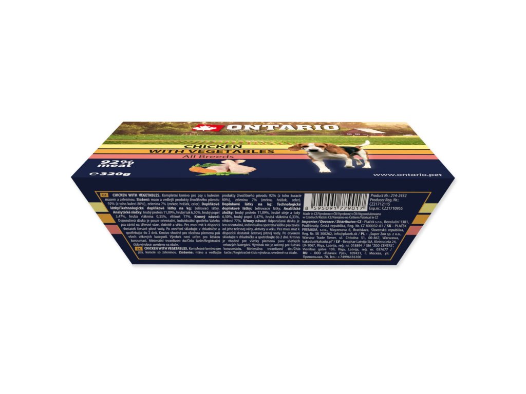 Složení: maso a vedlejší produkty živočišného původu 92% (z toho kuřecí 80%), zelenina 7% (mrkev, hrášek, celer).
