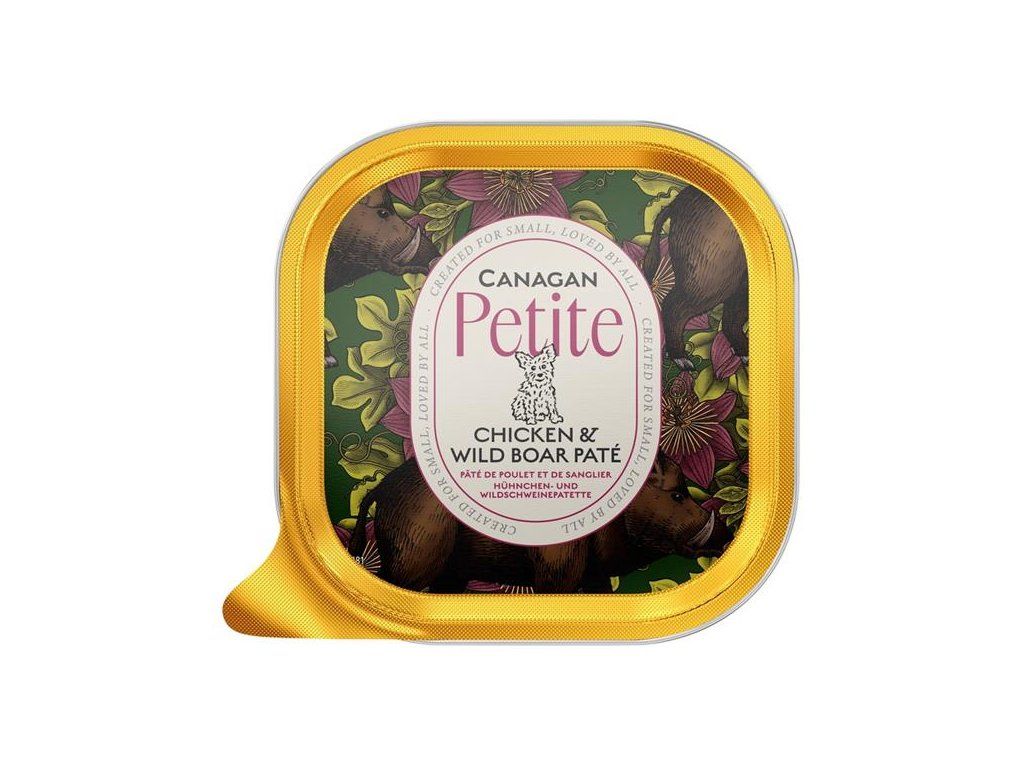 Paštika Canagan Petite vyrobená z těch nejlepších ingrediencí poskytne vašemu psímu mazlíčkovi lahodné a vyvážené krmení nebo skvěle poslouží jako topper k ochucení granulí. Stejně jako v ostatních výrobcích značky Canagan, ani v této vaničce nenajdete žádné obiloviny. Kuře a divočáka v nich doplňuje zelenina a ovoce (jablka v bio kvalitě), bylinky a kloubní výživa pro podporu pohyblivosti.