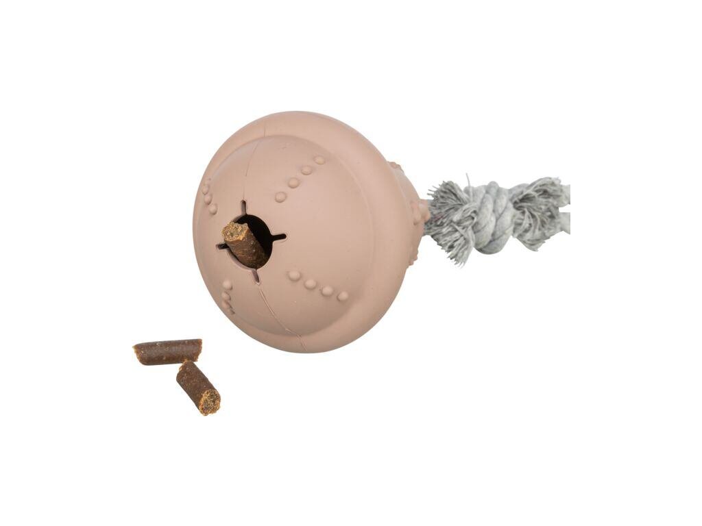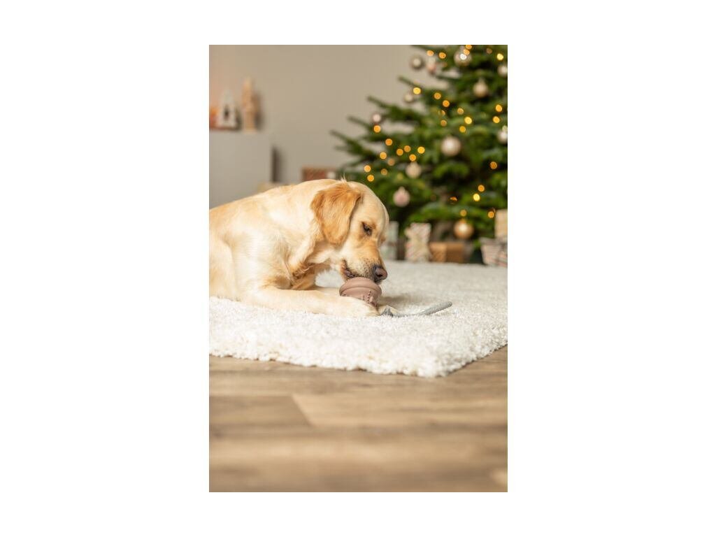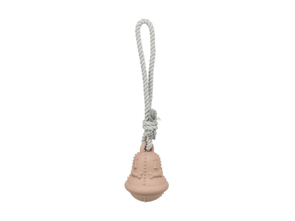 Vánoční zvonek na pamlsky, na laně, ø 12/36 cm, tvrdá guma/bavlna, starorůžová