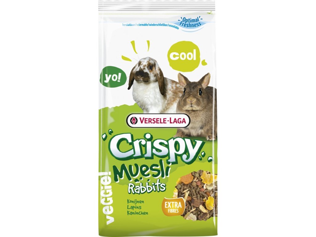 Versele-Laga Crispy Müsli pro králíky 1 kgKřupavé musli s ovesnými vločkami a zeleninou od Versele Laga pro dospělé králíky a zakrslé králíky jsou kompletním krmivem v základní směsi. Vynikající poměr kvalita/cena. Křupavé musli poskytuje všechny potřebné složky potravy pro králíky jako ovesné vločky, zeleninu, v tom bílkoviny, aminokyseliny, vitaminy a minerály, probiotika i vlákninu.