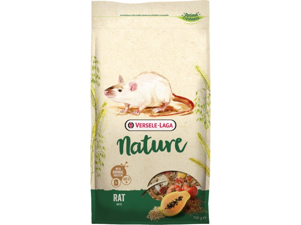 Versele-Laga Nature Rat pro potkanyKompletní krmivo určené pro potkany jakéhokoliv věku. Domovem vašeho potkana je příroda. Svět plný zeleniny, ovoce, obilnin, semen a hmyzu, nabitý přírodními vitamíny a minerálními látkami. V krmivu Nature najde váš potkan tytéž bohaté a výživné ingredience jako ve svém přirozeném prostředí.