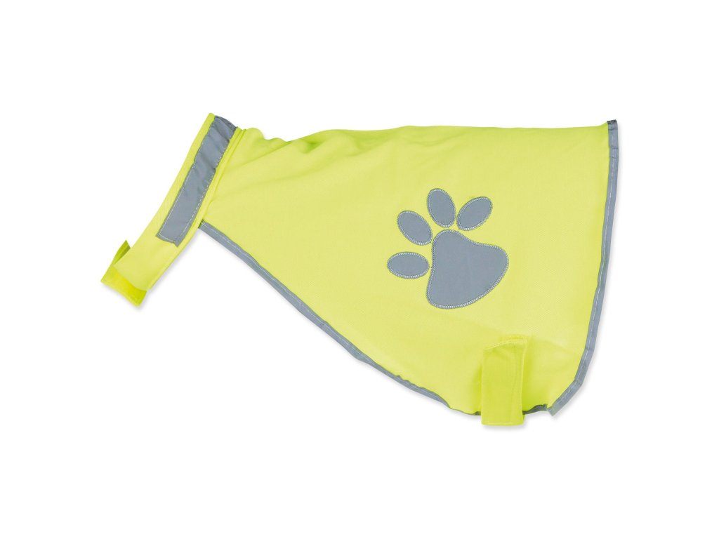 Bezpečností vesta pro psy vyrobená z polyesteru. Tato vesta zajistí bezpečné venčení vašeho psa především za tmy a ze šera. Obšitá reflexním páskem s potiskem tlapky. Plynule nastavitelné na břiše a krku se zapínáním na suchý zip. Neomezuje psa v pohybu.