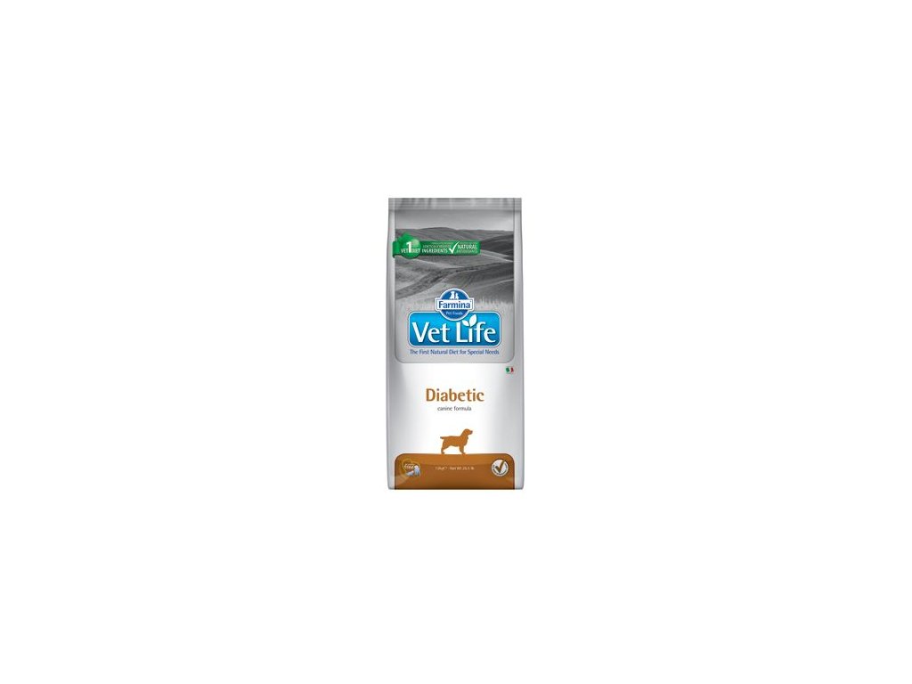 DiabeticFarmina Vet Life Diabetic je kompletní dietetické krmivo pro dospělé psy určené jako podpora kontrolovaného přísunu glukózy (Diabetes mellitus). Je vhodné také pro snížení nadměrné tělesné hmotnosti zvířete.
