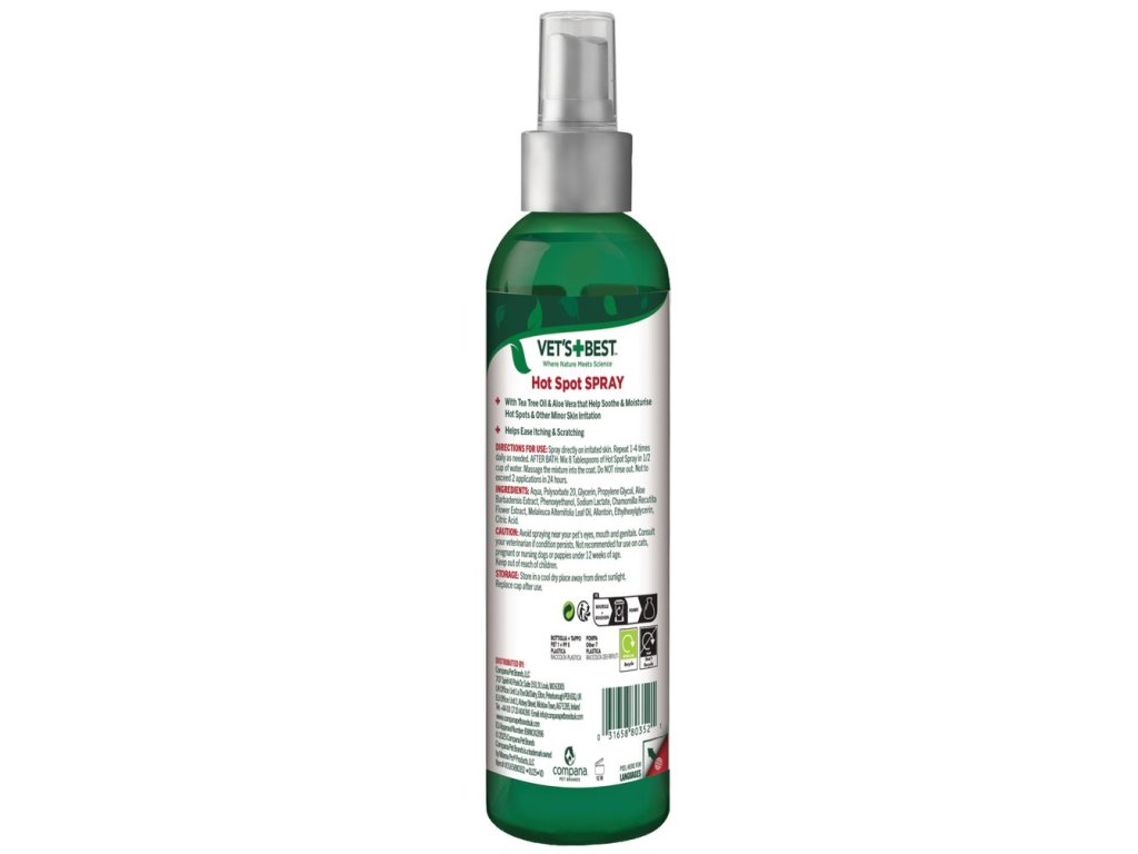 Vet’s Best Hot Spot Sprej přináší rychlou úlevu při svědění, zarudnutí a podráždění kůže. Veterinárně doporučené složení s přírodními složkami jako je čajovníkový olej, aloe vera a heřmánek, pomáhá zklidnit hotspoty i podráždění způsobená alergiemi či vlivy prostředí.