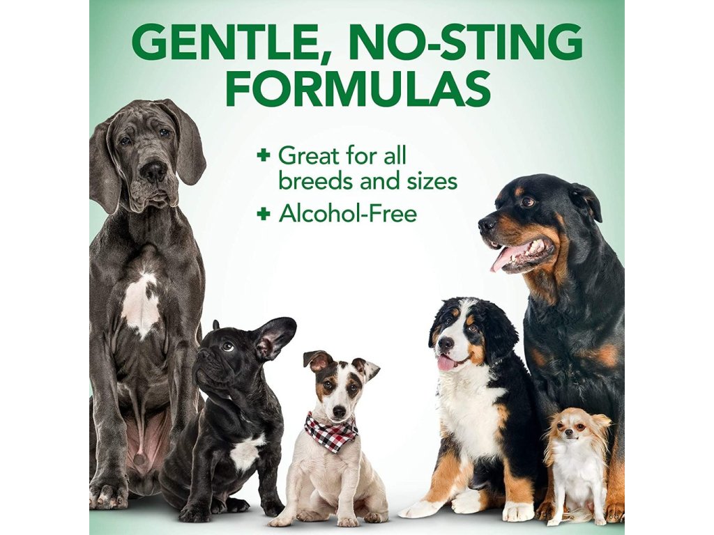 - Jemné složení bez alkoholu nedráždí pokožku a nepálí – je proto ideální pro citlivou kůži psů.