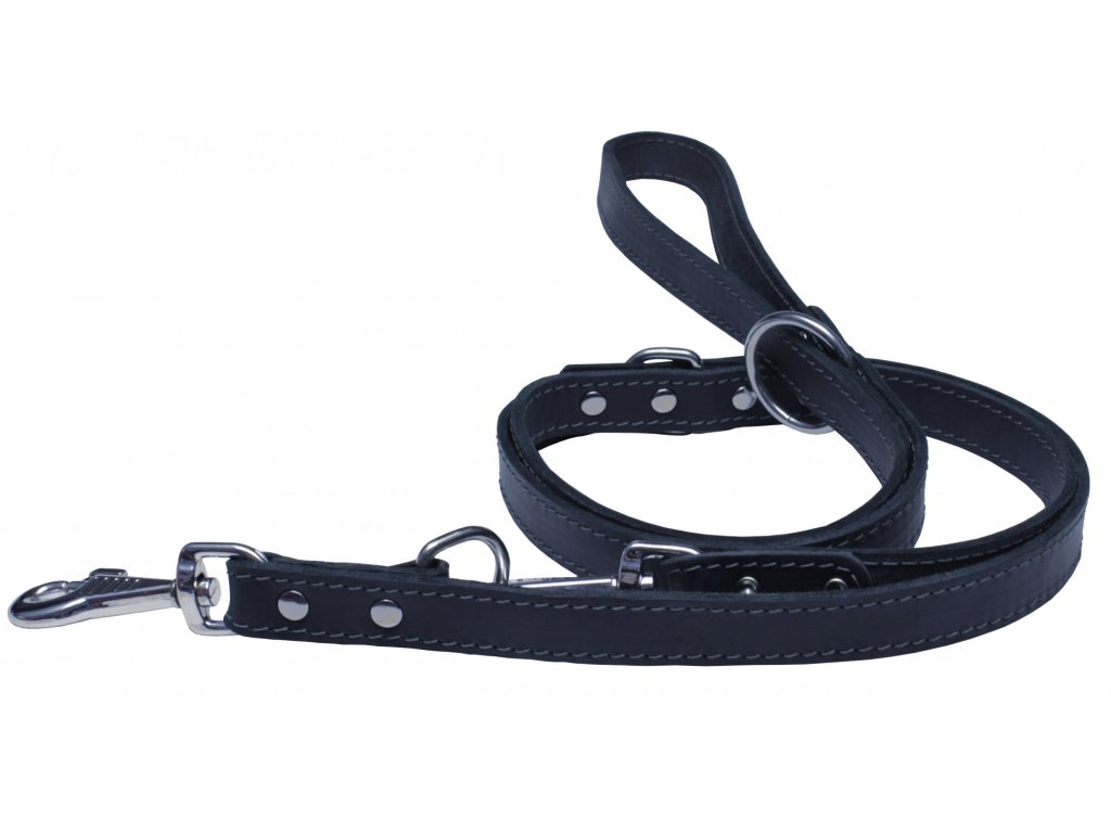 HUHUBAMBOO vodítko přepínací mastná kůže 2,5 x 240 cm, černéKožená vodítka vyrobená z kvalitní vrchové promaštěné hovězí kůže, které dosahují velké pevnosti a jemnosti. Po délce jsou vybavena několika svařenými kroužky pro možnost zkrácení či prodloužení. Jsou určena pro střední a velká plemena.