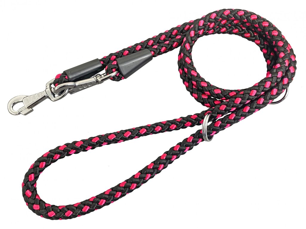 Huhubamboo vodítko UZLÍK přepínací lanové 1,4 x 240 cm, černo-fuchsiePřepínací vodítka jsou vyrobená z pevného lana o průměru 1,4 cm a délce 240 cm v designu malých uzlíků. Pro maximální pevnost jsou spoje vodítek vysokoteplotně svařené, prošité a překryté plastovou krytkou. Po délce vodítek jsou umístěné dva kroužky pro přepínání dle potřeb.