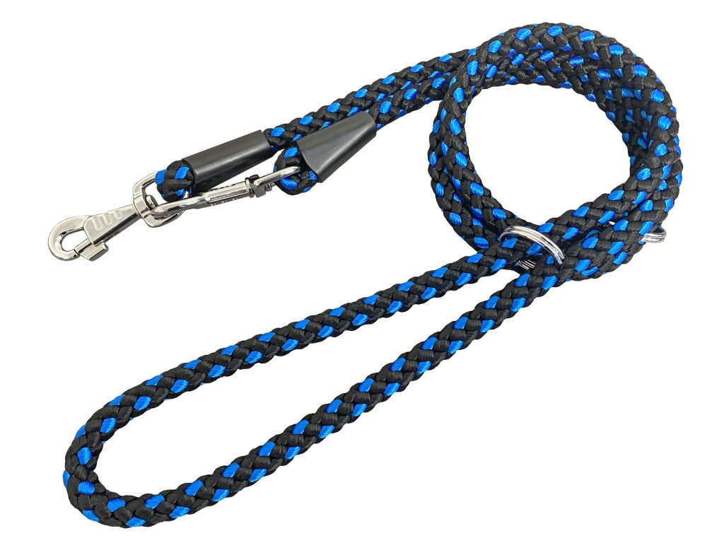 Huhubamboo vodítko UZLÍK přepínací lanové 1,4 x 240 cm, černo-modréPřepínací vodítka jsou vyrobená z pevného lana o průměru 1,4 cm a délce 240 cm v designu malých uzlíků. Pro maximální pevnost jsou spoje vodítek vysokoteplotně svařené, prošité a překryté plastovou krytkou. Po délce vodítek jsou umístěné dva kroužky pro přepínání dle potřeb.