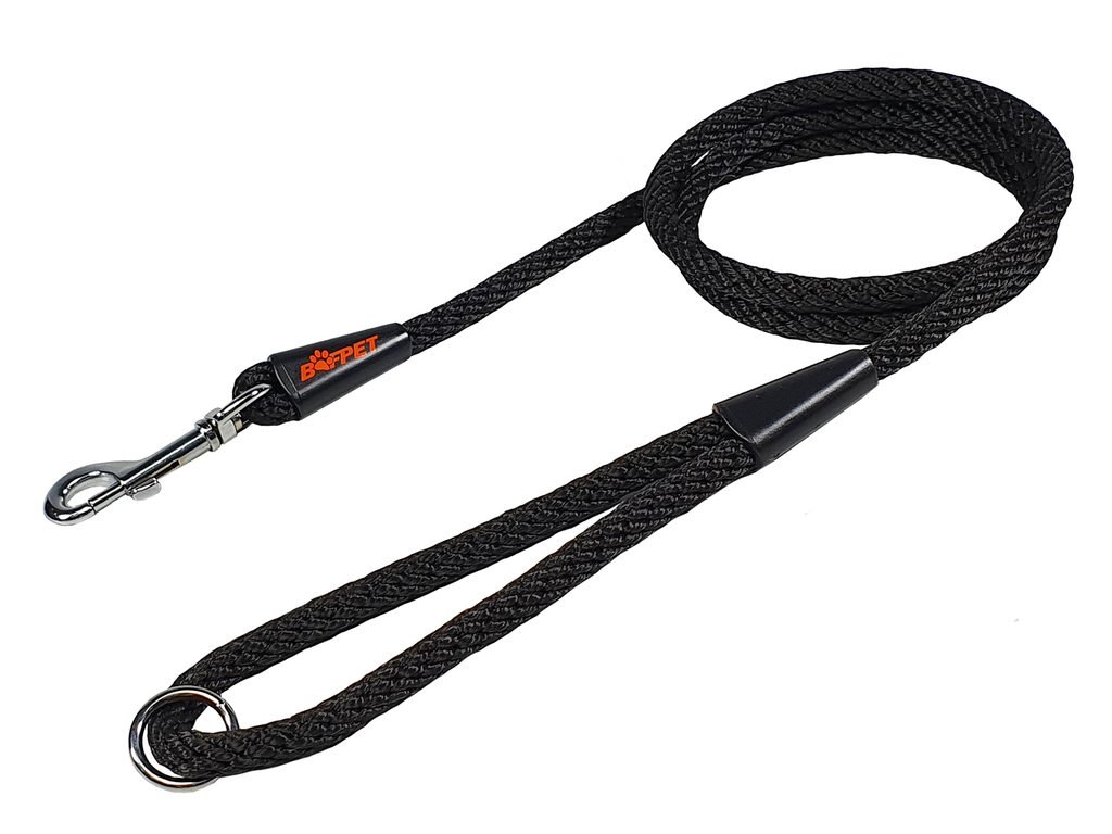 Klasické provazové vodítko je vyrobeno z pevného lana v atraktivním spirálovém designu. Díky své konstrukci je vhodné pro malá, střední i velká plemena psů. Spoje vodítka jsou vysokoteplotně svařené, prošité a překryté plastovou krytkou, což zajišťuje maximální pevnost a dlouhou životnost. V rukojeti se nachází svařovaný kovový kroužek, který umožňuje rychlé zkrácení vodítka na polovinu – praktické při pohybu ve městě nebo ve stísněných prostorech. Toto vodítko spojuje odolnost, funkčnost a moderní vzhled, což z něj činí ideální volbu pro každodenní venčení.