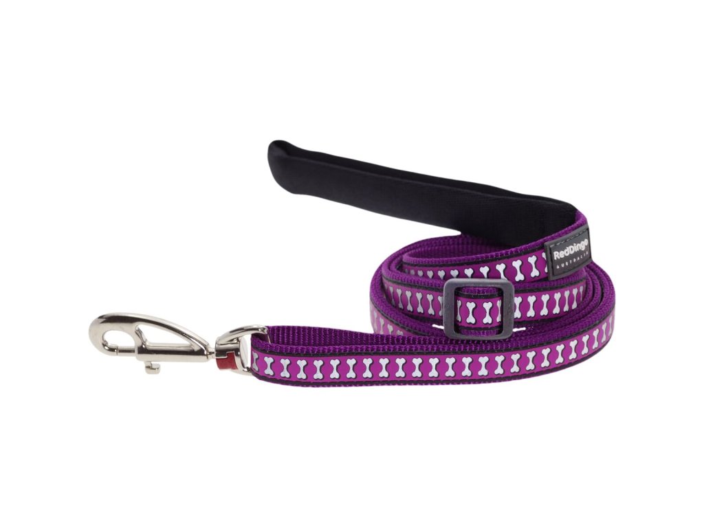 Red Dingo vodítko reflexní – Bones Purple – 20 mm x 1,8 m