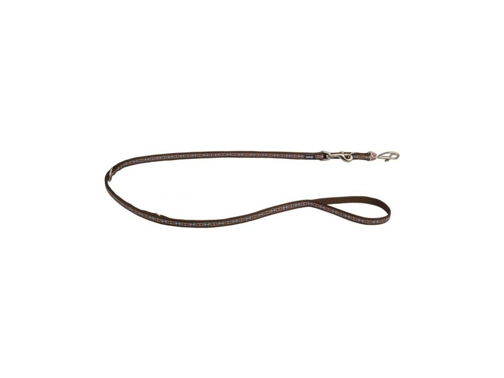 Přepínací vodítko Red Dingo. Délka je nastavitelná pomocí dvou karabin v rozmezí 1,0 – 2,0 m. Šířka popruhu 12 mm. Vodítka Red Dingo jsou vyrobené z kvalitního nylonového popruhu. Okraje jsou hustě tkané pro ještě větší odolnost vůči oděru. Našitá stuha se vzorem je utkaná speciální technikou, která zaručuje vysokou odolnost a trvanlivost. Použitá příze zajišťuje skutečnou stálost barev. Přepínací vodítka mají dvě karabiny a s jejich pomocí lze délku snadno nastavovat podle potřeby. Karabiny Red Dingo patří mezi jedny z nejpevnějších na trhu a díky unikátnímu výměnnému systému je možné jednu z karabin snadno vyměnit. Vodítko je vybaveno jednou standardní karabinou a jednou výměnnou klasickou karabinou Red Dingo. Ostatní karabiny ve tvaru psa je možné dokoupit samostatně. Více najdete v kategorii Karabiny. Kroužky jsou vyrobené z velmi kvalitní karbonové oceli. Zakončení popruhu je pod úhlem 20 stupňů tak, že jsou všechny spoje velice hladké.Doplňkové parametry