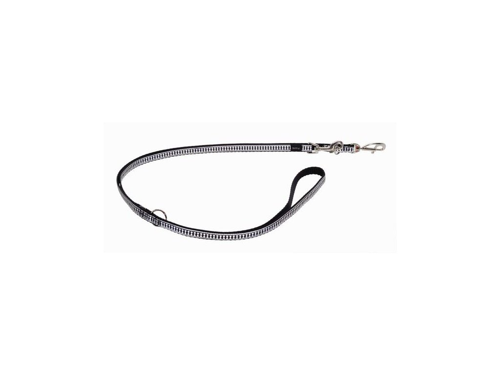 Přepínací vodítko Red Dingo. Délka je nastavitelná pomocí dvou karabin v rozmezí 1,0 – 2,0 m. Šířka popruhu 12 mm. Vodítka Red Dingo jsou vyrobené z kvalitního nylonového popruhu. Okraje jsou hustě tkané pro ještě větší odolnost vůči oděru. Našitá reflexní stuha velmi dobře odráží pouliční světlo, světla aut, cyklistů apod. Při dopadu světla na vodítko dochází k jeho výraznému odrazu od reflexních ploch – kostiček. Reflexní řada výrobků Red Dingo výrazně přispívá k bezpečnosti Vašich čtyřnohých kamarádů během Vašich procházek nejen za šera a tmy. S reflexními výrobky Red Dingo budete originální a budete vidět! Přepínací vodítka mají dvě karabiny a s jejich pomocí lze délku snadno nastavovat podle potřeby. Karabiny Red Dingo patří mezi jedny z nejpevnějších na trhu a díky unikátnímu výměnnému systému je možné jednu z karabin snadno vyměnit. Vodítko je vybaveno jednou standardní karabinou a jednou výměnnou klasickou karabinou Red Dingo. Ostatní karabiny ve tvaru psa je možné dokoupit samostatně. Více najdete v kategorii Karabiny. Kroužky jsou vyrobené z velmi kvalitní karbonové oceli. Zakončení popruhu je pod úhlem 20 stupňů tak, že jsou všechny spoje velice hladké.Doplňkové parametry