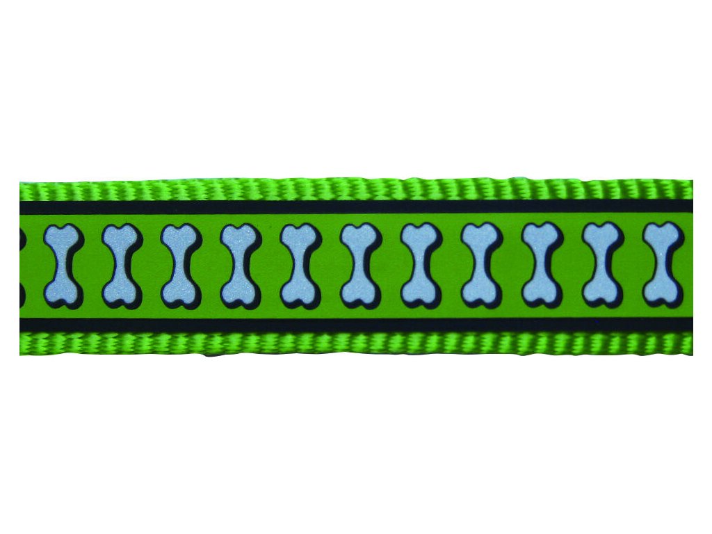 Red Dingo vodítko přepínací reflexní – Bones Lime – 12 mm x 2 m