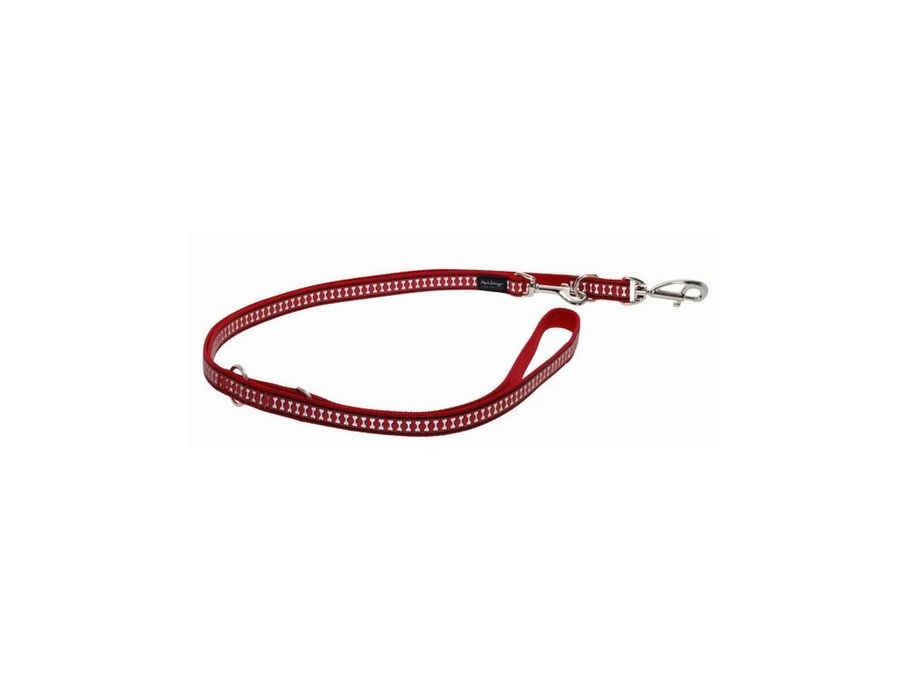 Přepínací vodítko Red Dingo. Délka je nastavitelná pomocí dvou karabin v rozmezí 1,0 – 2,0 m. Šířka popruhu 20 mm. Vodítka Red Dingo jsou vyrobené z kvalitního nylonového popruhu. Okraje jsou hustě tkané pro ještě větší odolnost vůči oděru. Našitá reflexní stuha velmi dobře odráží pouliční světlo, světla aut, cyklistů apod. Při dopadu světla na vodítko dochází k jeho výraznému odrazu od reflexních ploch – kostiček. Reflexní řada výrobků Red Dingo výrazně přispívá k bezpečnosti Vašich čtyřnohých kamarádů během Vašich procházek nejen za šera a tmy. S reflexními výrobky Red Dingo budete originální a budete vidět! Přepínací vodítka mají dvě karabiny a s jejich pomocí lze délku snadno nastavovat podle potřeby. Karabiny Red Dingo patří mezi jedny z nejpevnějších na trhu a díky unikátnímu výměnnému systému je možné jednu z karabin snadno vyměnit. Vodítko je vybaveno jednou standardní karabinou a jednou výměnnou klasickou karabinou Red Dingo. Ostatní karabiny ve tvaru psa je možné dokoupit samostatně. Více najdete v kategorii Karabiny. Kroužky jsou vyrobené z velmi kvalitní karbonové oceli. Zakončení popruhu je pod úhlem 20 stupňů tak, že jsou všechny spoje velice hladké.Doplňkové parametry