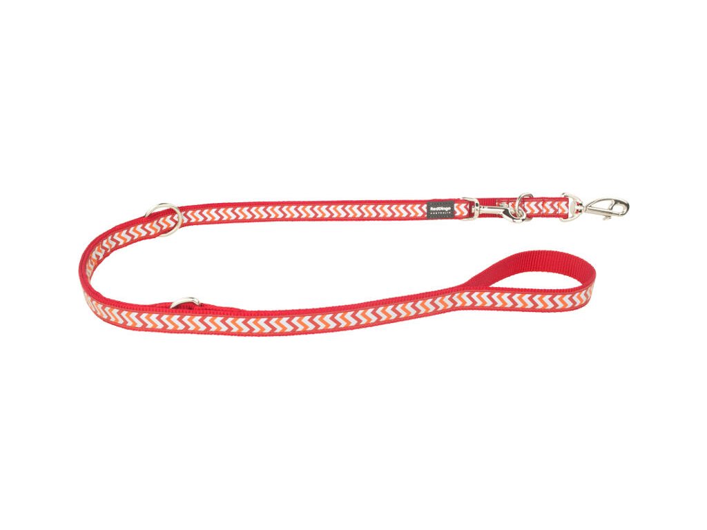 Přepínací vodítko Red Dingo. Délka je nastavitelná pomocí dvou karabin v rozmezí 1,0 – 2,0 m. Šířka popruhu 20 mm. Vodítka Red Dingo jsou vyrobené z kvalitního nylonového popruhu. Okraje jsou hustě tkané pro ještě větší odolnost vůči oděru. Našitá reflexní stuha velmi dobře odráží pouliční světlo, světla aut, cyklistů apod. Při dopadu světla na vodítko dochází k jeho výraznému odrazu od reflexních ploch Ziggy. Reflexní řada výrobků Red Dingo výrazně přispívá k bezpečnosti Vašich čtyřnohých kamarádů během Vašich procházek nejen za šera a tmy. S reflexními výrobky Red Dingo budete originální a budete vidět! Přepínací vodítka mají dvě karabiny a s jejich pomocí lze délku snadno nastavovat podle potřeby. Karabiny Red Dingo patří mezi jedny z nejpevnějších na trhu a díky unikátnímu výměnnému systému je možné jednu z karabin snadno vyměnit. Vodítko je vybaveno jednou standardní karabinou a jednou výměnnou klasickou karabinou Red Dingo. Ostatní karabiny ve tvaru psa je možné dokoupit samostatně. Více najdete v kategorii Karabiny. Kroužky jsou vyrobené z velmi kvalitní karbonové oceli. Zakončení popruhu je pod úhlem 20 stupňů tak, že jsou všechny spoje velice hladké.Doplňkové parametry